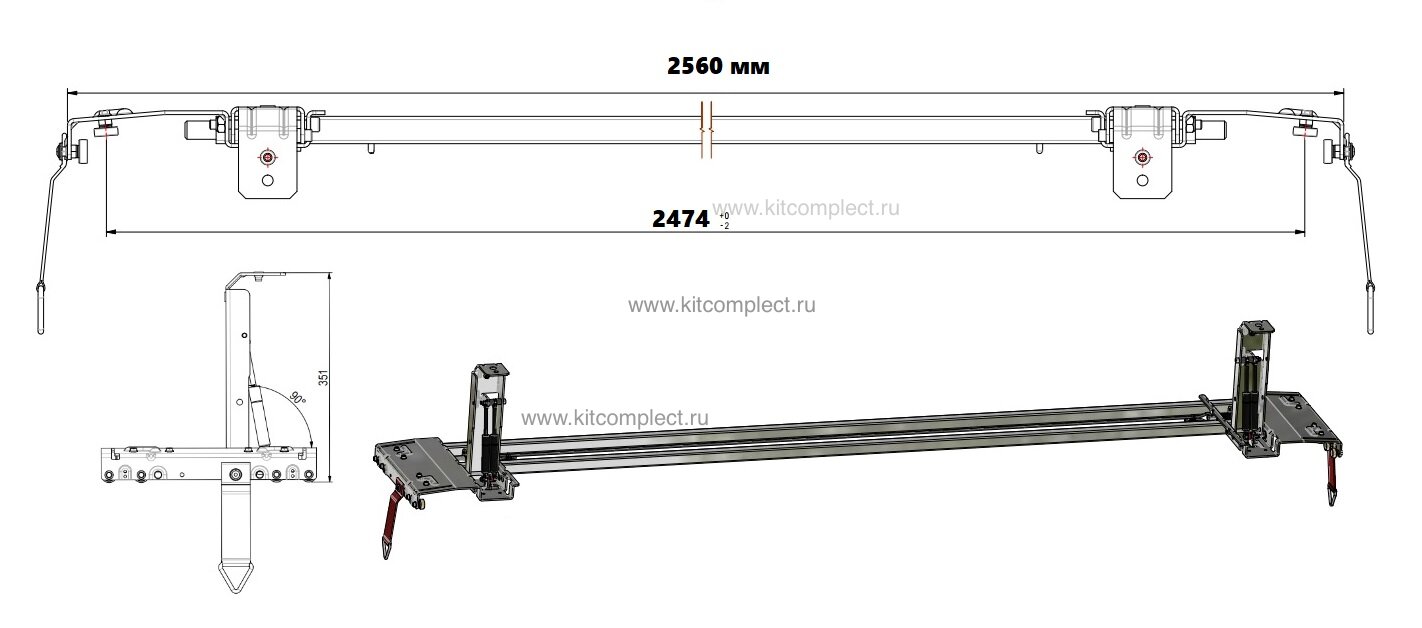 Каретка сдвижной крыши VERSUS 2х700N, 2560 мм VSK арт. 214-090011